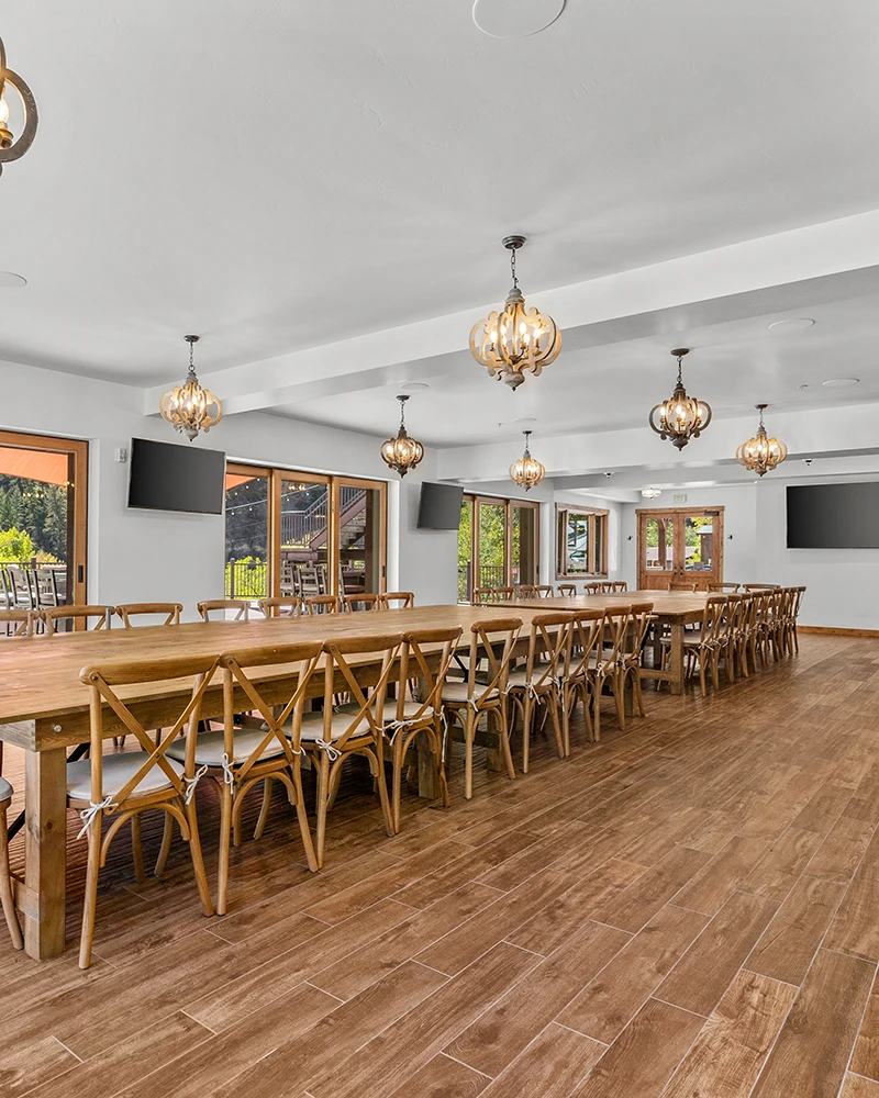 The Grand Room offers 2,000 square feet of elegant space, perfect for comfortably hosting your guests. Its gorgeous hardwood floors and neutral decor make it easy to customize and decorate for any style of event. Four sets of large sliding doors open fully to the outdoor terrace, giving you the option to enjoy fresh air and river views while keeping the flexibility to move indoors if the weather changes.